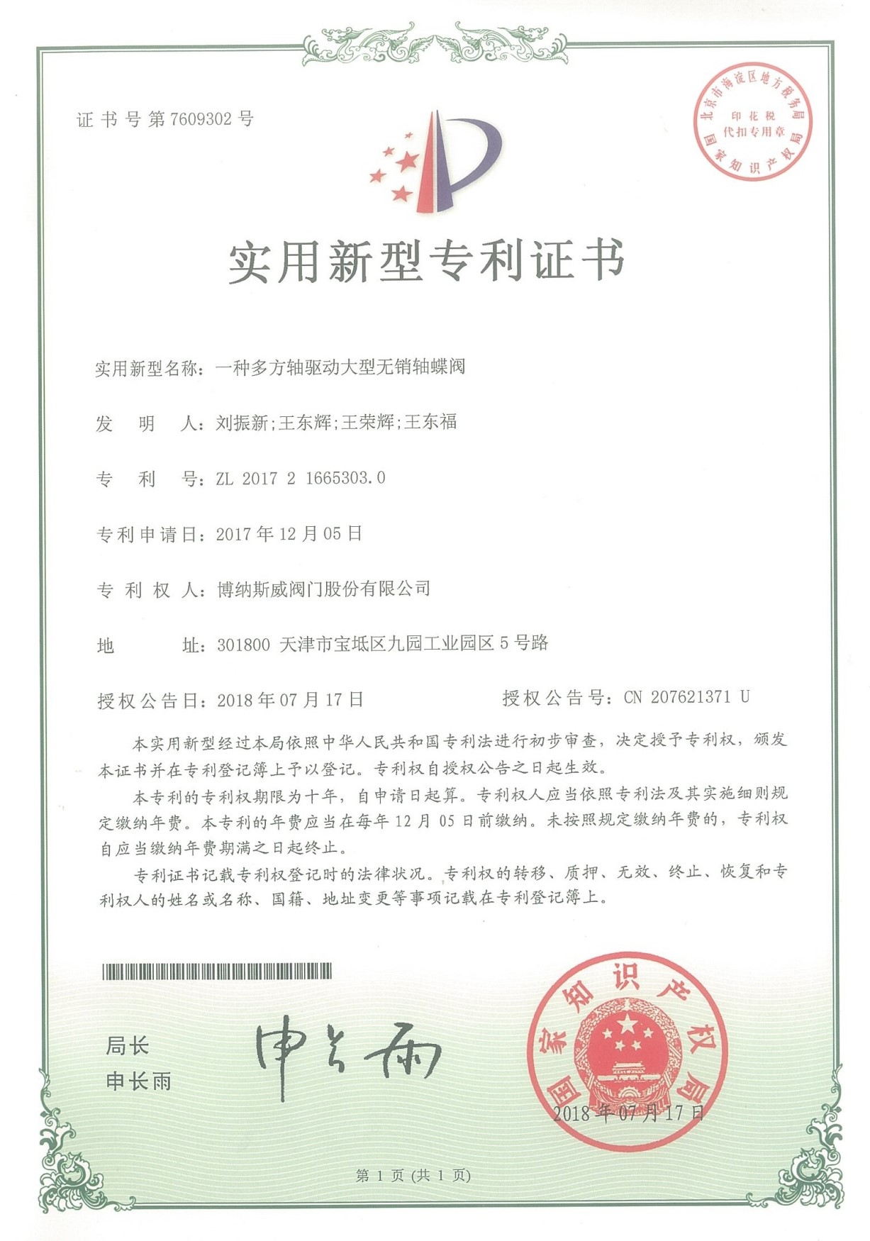 公司先后通過ISO9001質(zhì)量管理體系、ISO14001環(huán)境管理體系、GB/T45001職業(yè)健康安全管理體系、歐盟CE等認(rèn)證,榮獲“高新技術(shù)企業(yè)”、“國防特種閥門研發(fā)中心”、“天津市企業(yè)技術(shù)中心”等榮譽(yù)。公司與武漢大學(xué)、長沙理工大學(xué)、華北水利水電大學(xué)廣泛開展產(chǎn)學(xué)研合作。潛心投入也結(jié)出累累碩果:獲得200余項(xiàng)專利技術(shù),主編、參編國家和行業(yè)標(biāo)準(zhǔn)10多項(xiàng),在業(yè)內(nèi)重要期刊發(fā)表10余篇論文,榮獲中國機(jī)械工業(yè)科學(xué)技術(shù)獎(jiǎng)1項(xiàng)。