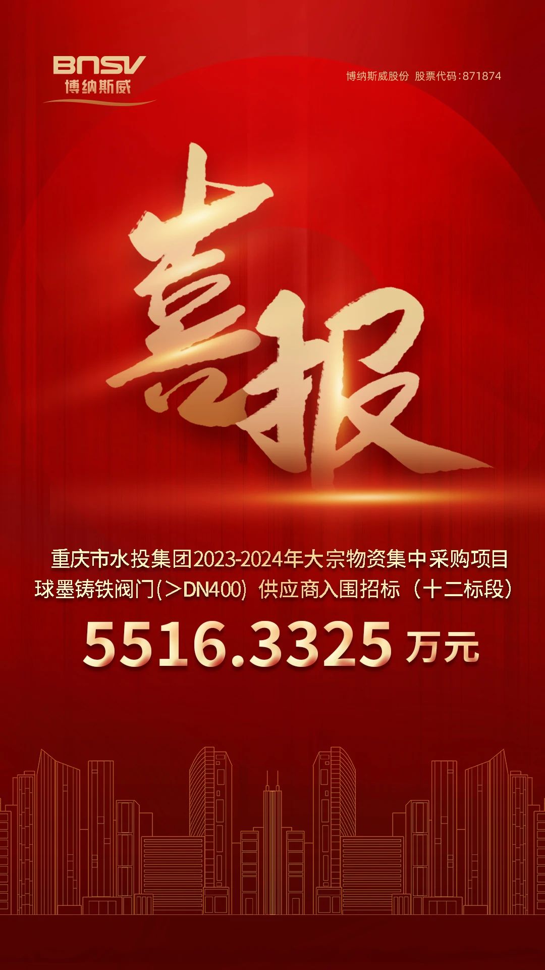 喜報!博納斯威入圍中標重慶市水投集團5516.3325萬元