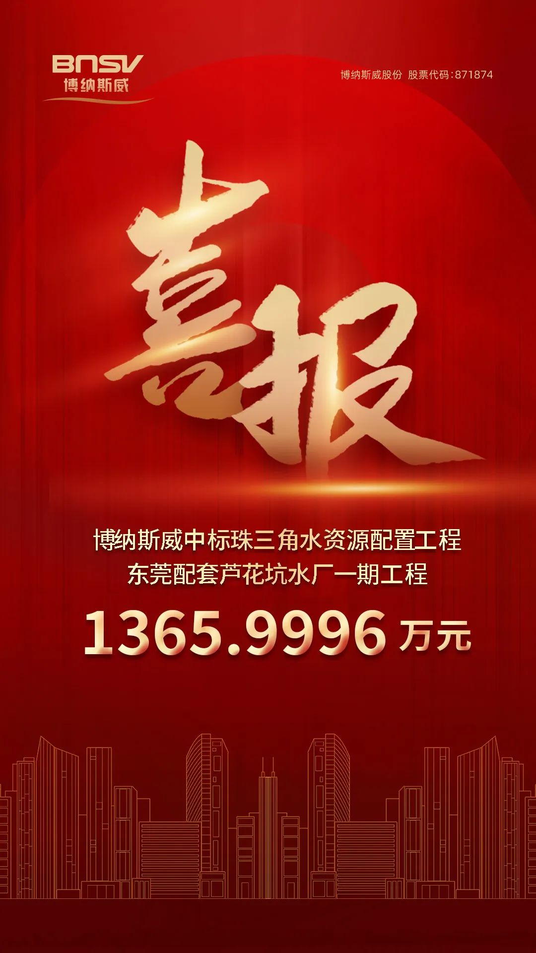 喜報!博納斯威中標珠三角水資源配置工程東莞配套蘆花坑水廠一期工程1365.9996萬元