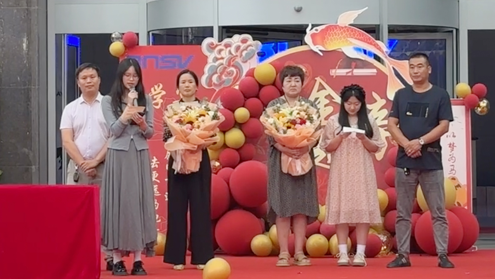 冰心先生說,成功之花,人們往往驚羨它現(xiàn)時的明艷,然而當初,它的芽兒卻浸透了奮斗的淚泉,灑滿了犧牲的血雨。三位同學今天成績的取得,凝聚著她們十二年如一日,努力拼搏、頑強奮斗的辛苦,更是凝聚著父母多年來的精心培育。三位同學將多年來對父母的感激之情凝煉成家書,在現(xiàn)場深情朗讀家書來表達對父母的感謝。
