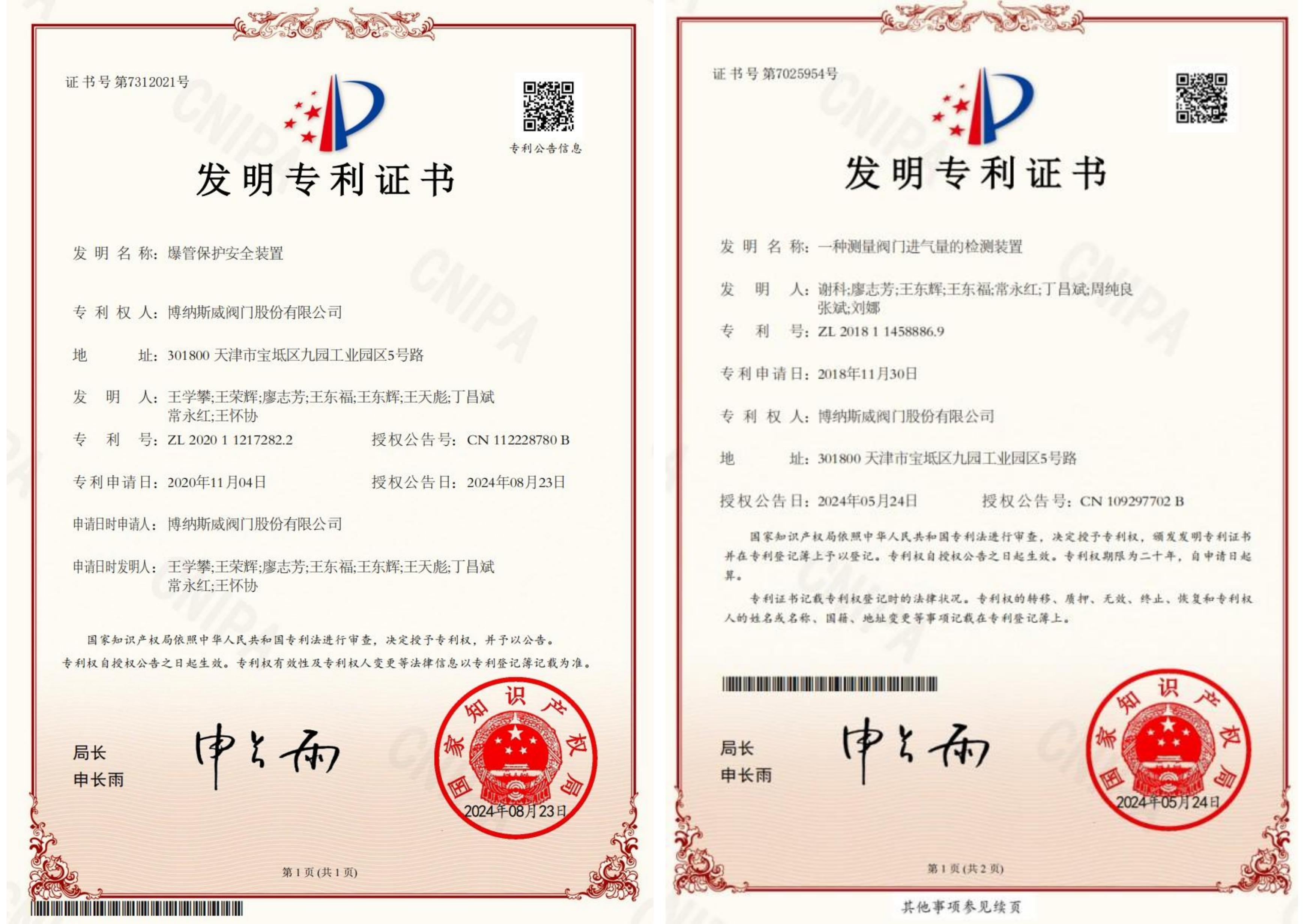 博納斯威閥門股份有限公司在創新領域進入了高速發展階段,2024年公司取得了豐碩成績,成功獲得了五項軟件著作權與六項發明專利。