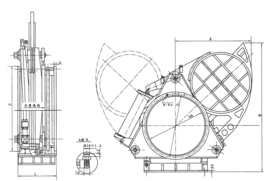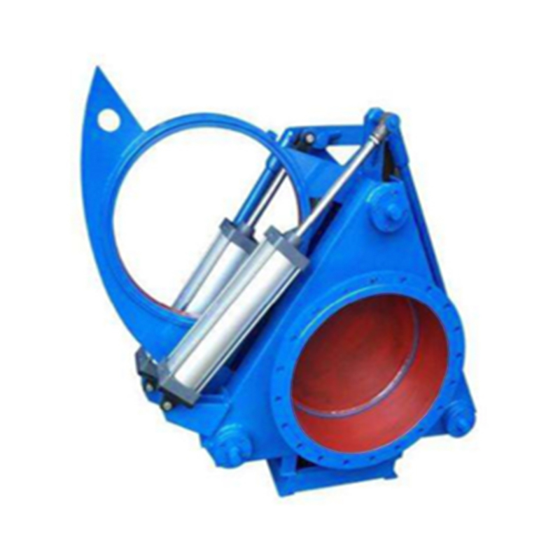 氣動(dòng)盲板閥主要由左閥體、右閥體、絲杠副、閥板、密封圈、杠桿、氣缸等零件組成,并由底座、支撐柱構(gòu)成一個(gè)剛性結(jié)構(gòu)體。閥門中設(shè)有夾緊、松開氣缸和翻板氣缸,夾緊、松開氣缸通過杠桿副和絲桿螺旋副驅(qū)動(dòng)左、右閥體完成松開、夾緊動(dòng)作,翻板氣缸驅(qū)動(dòng)閥板完成開關(guān)動(dòng)作。橡膠密封圈鑲嵌在閥板上,具有耐溫高、密封性能好、更換方便、使用壽命長(zhǎng)等特點(diǎn)。 本閥可以單臺(tái)遠(yuǎn)距離控制,亦可多臺(tái)聯(lián)網(wǎng)遠(yuǎn)距離控制,非正常情況下還可以利用閥門本身裝置手動(dòng)操作。
