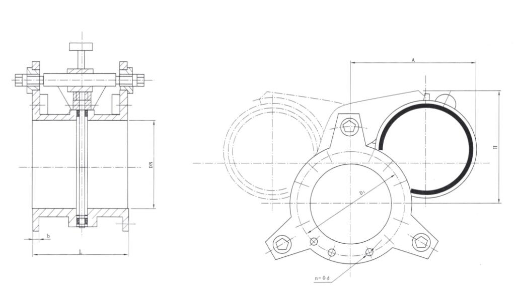 F43AX型手動扇形盲板閥由左閥體、右閥體、中閥體、連接螺桿(三根)組成,用扳手旋轉連接螺桿,使左右閥體完成夾緊和松開動作,利用閥板上盲板和通孔板的位置變換達到啟閉目的。具有結構簡單,重量輕,性能可靠,操作方便等特點。本閥為短結構系列,橡膠密封圈分別安裝在左、右閥體上。
